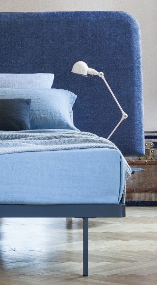Het hoofdeinde moet worden gezien als een soort bijzettafeltje op een structuur dat op die manier uitgroeit tot een functioneel element. De schuine stand biedt extra comfort aan iedereen die in bed wil lezen of werken.
