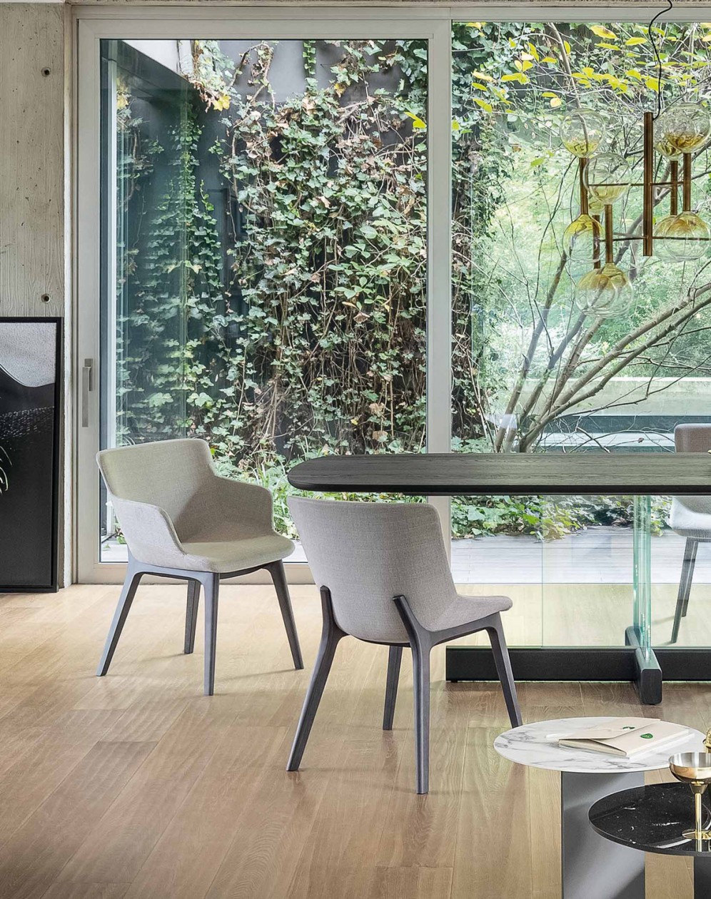 The “Cross” dining table consists of a combination of three essential elements that have been stacked together to create a stylish statement table. Its logic rests on the honesty of the materials that are used according to the functions they are fulfilling in the overall construction of the table. It represents a certain economy of means, while it is by no means sparing in its visual impact.