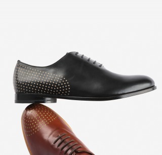 These perforations were intended to be less decorative and more architectural and graphic. They have all been grouped together in a single compact and geometric pattern. This basic pattern is the synthesis between a more masculine rectangular shape and a softer and feminine oblong shape. The goal is to achieve a basic unisex pattern that can be equally suitable for use on male and female shoes. This unisex aspect is one of the characteristics of the brand. The positioning of this graphic pattern on the shoes will define the different versions.