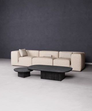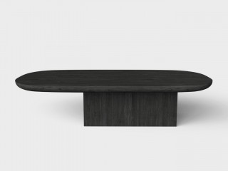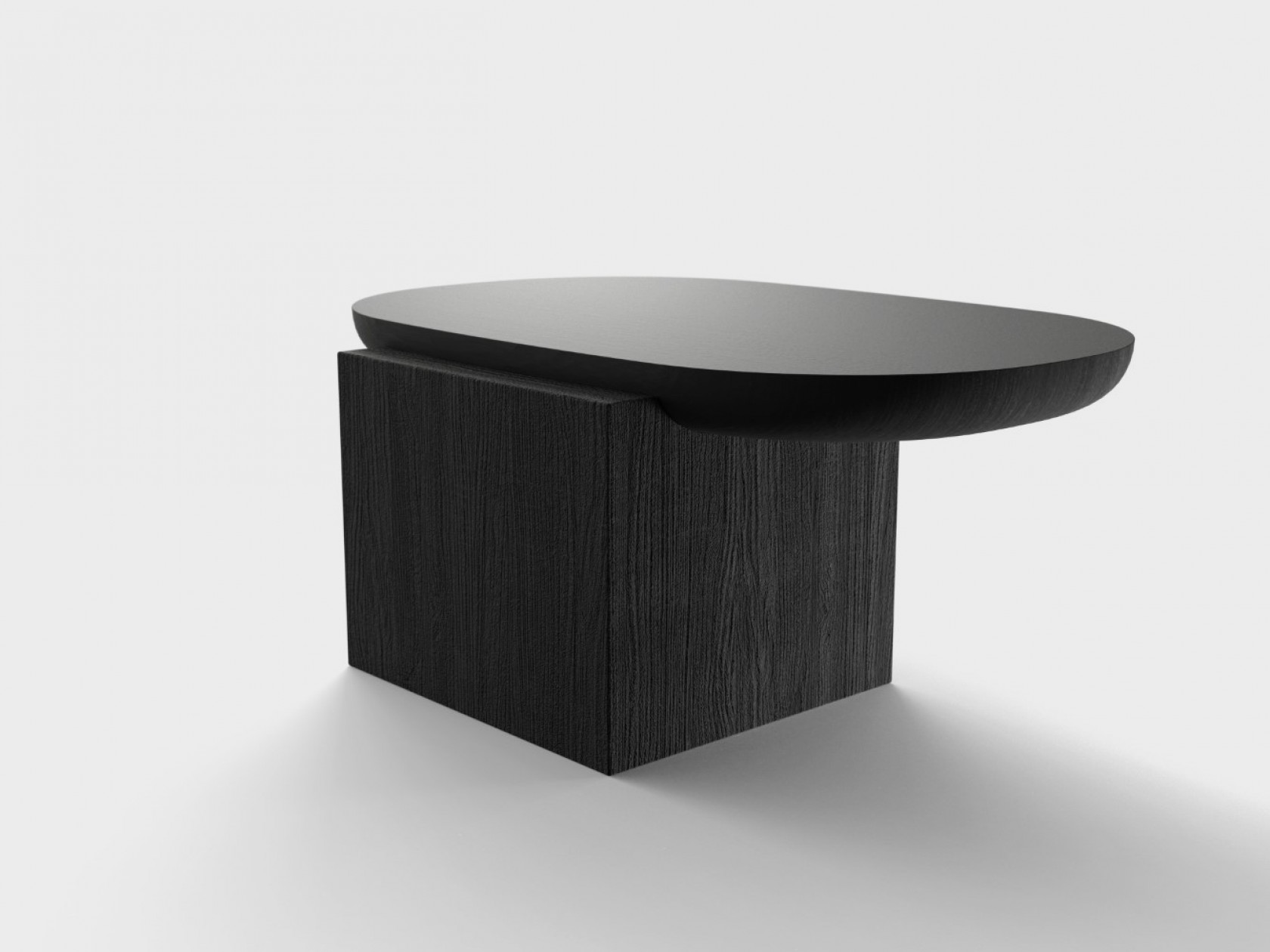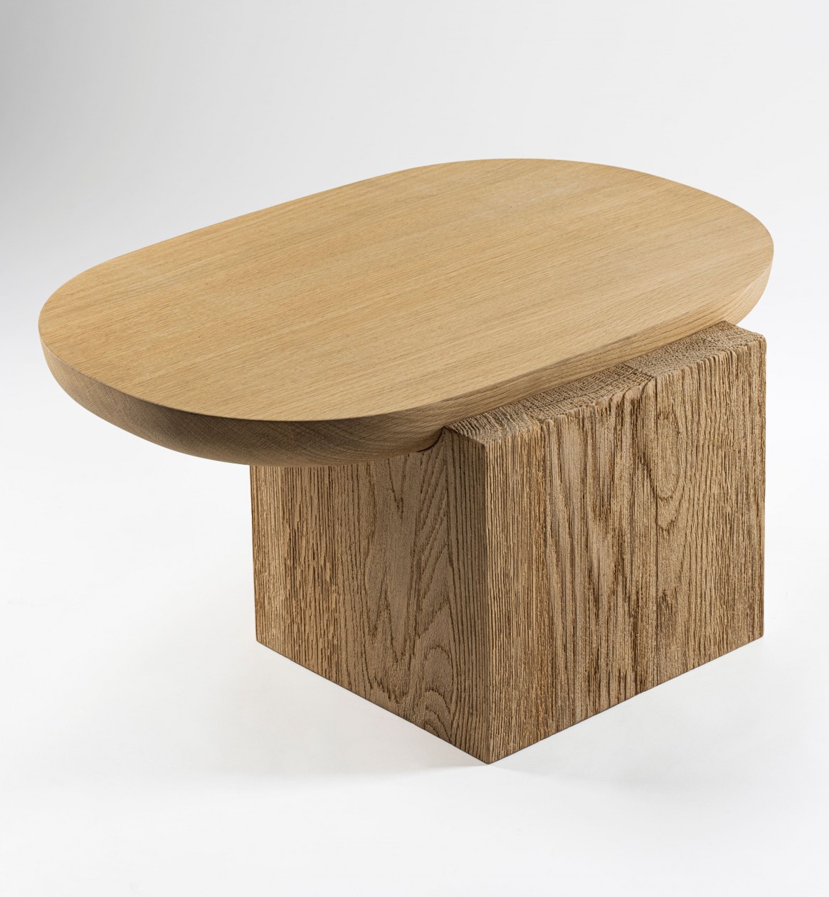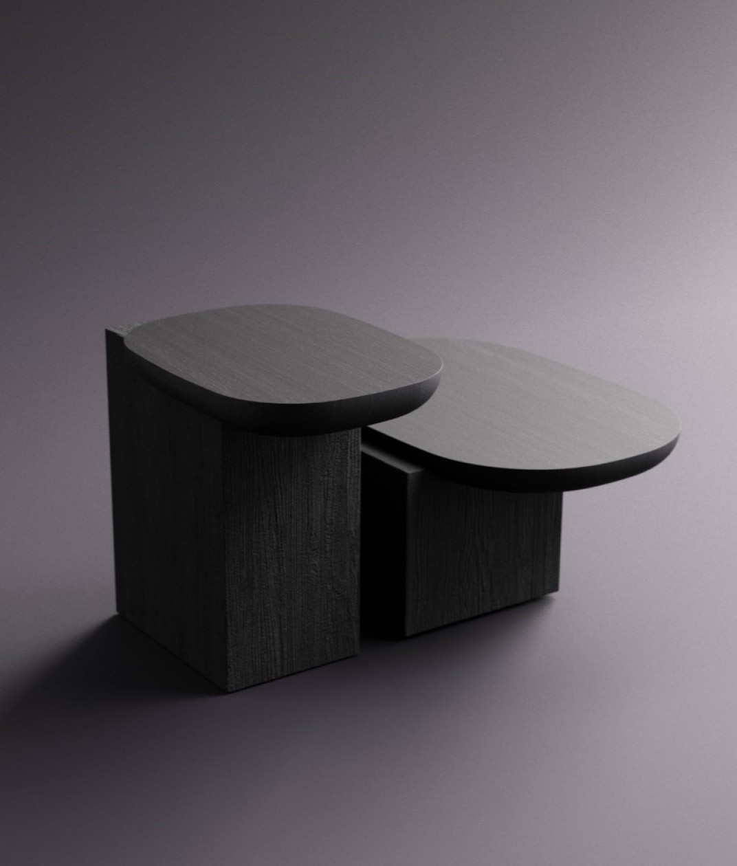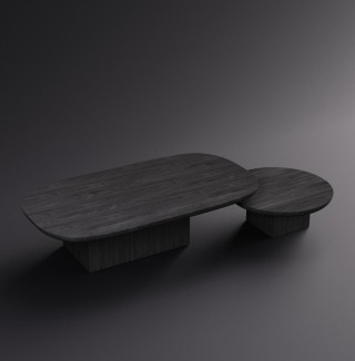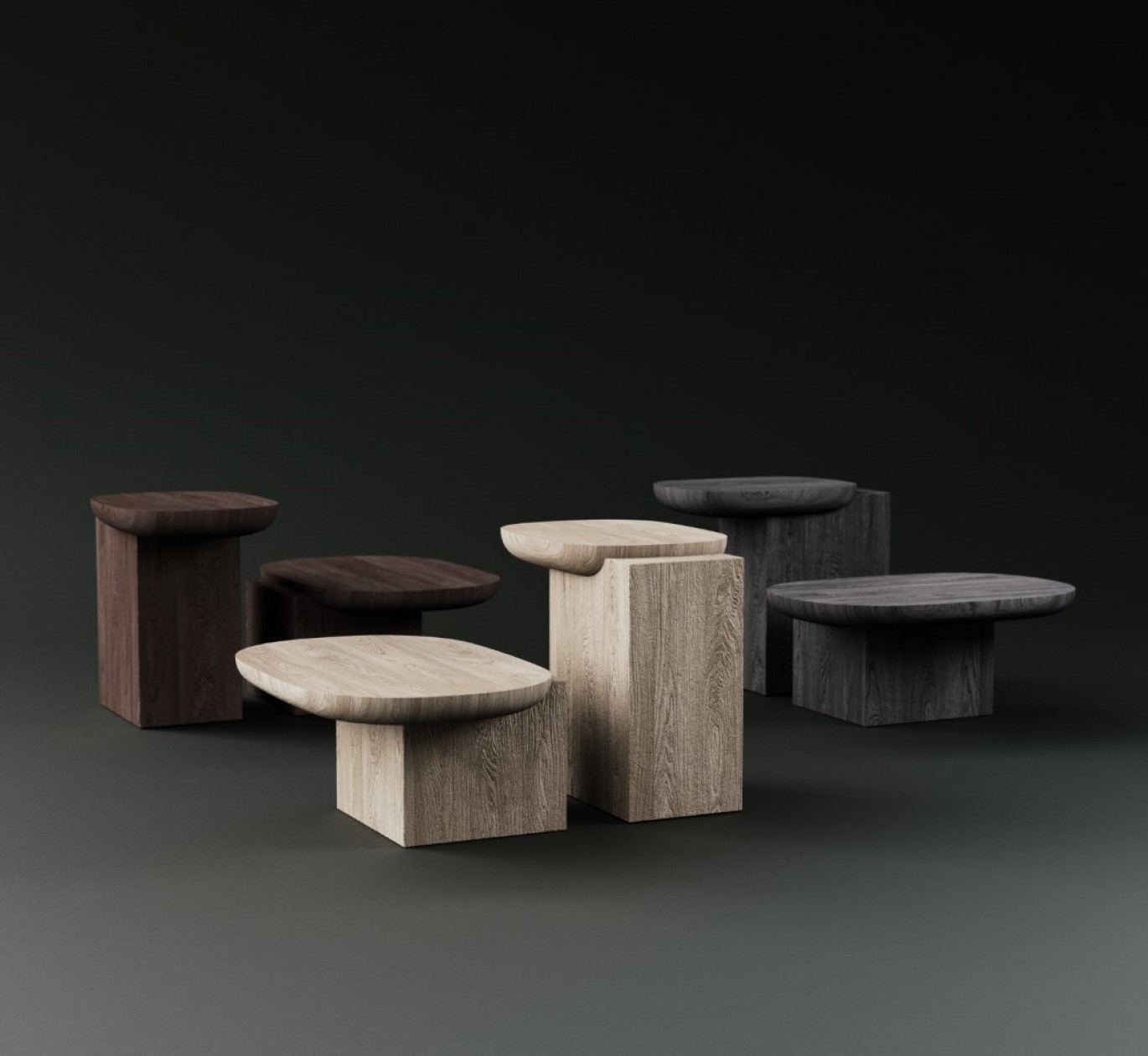 The design of both tables plays with a combination of forms that have entirely different personalities, giving them a very sculptural personality. However, their construction logic is very rational. To allow the tabletop to extend outwards, reaching beyond the footprint of its base, the foundation needs real substance. These bases, with their minimal, angular, square shapes, resemble blocks of wood cut into square pieces, almost as if they had not been sculpted at all. This angularity contrasts sharply with the soft, subtle and elaborate curves of the tabletops.