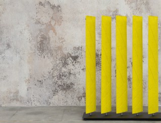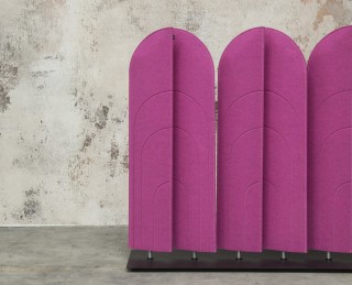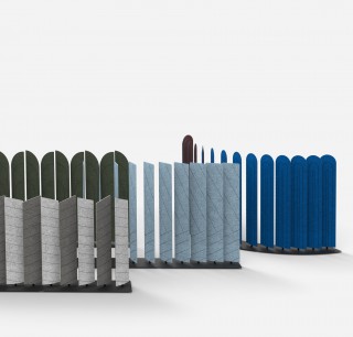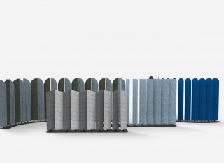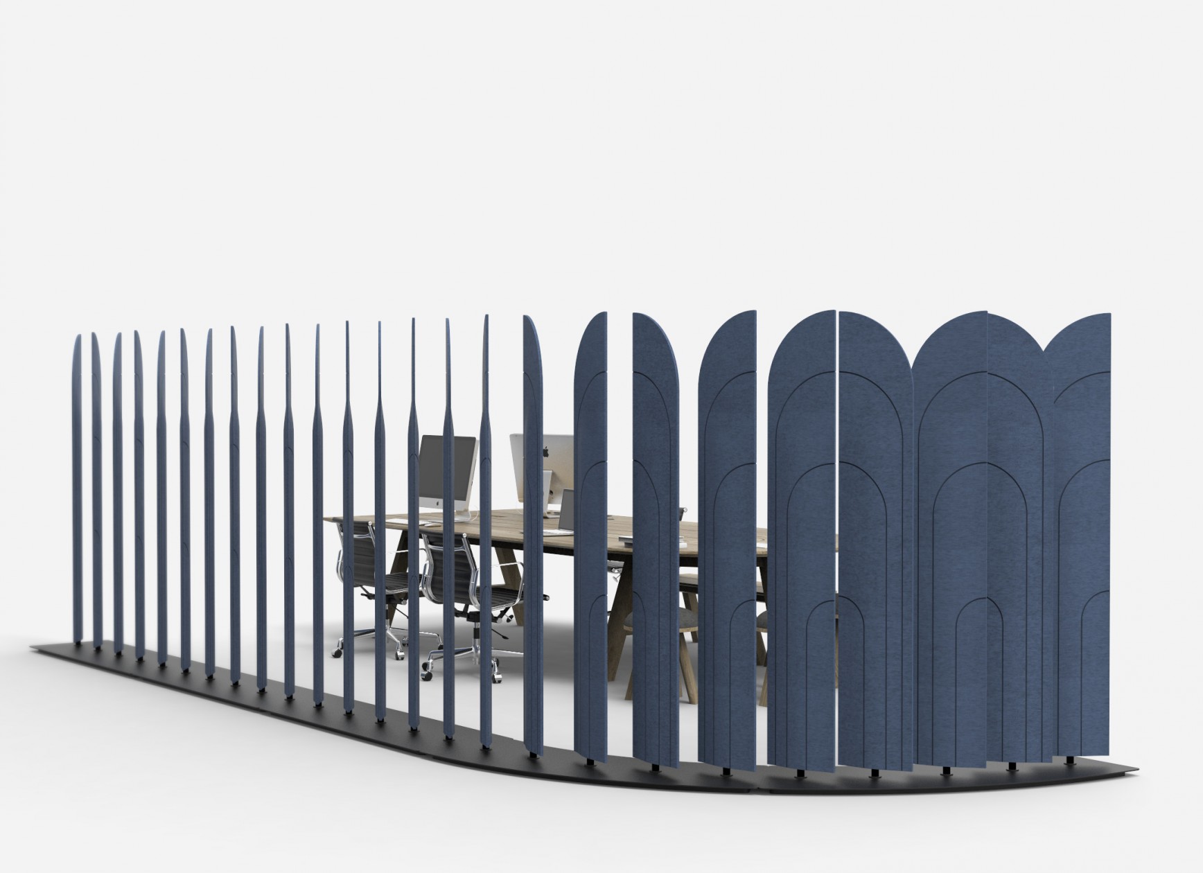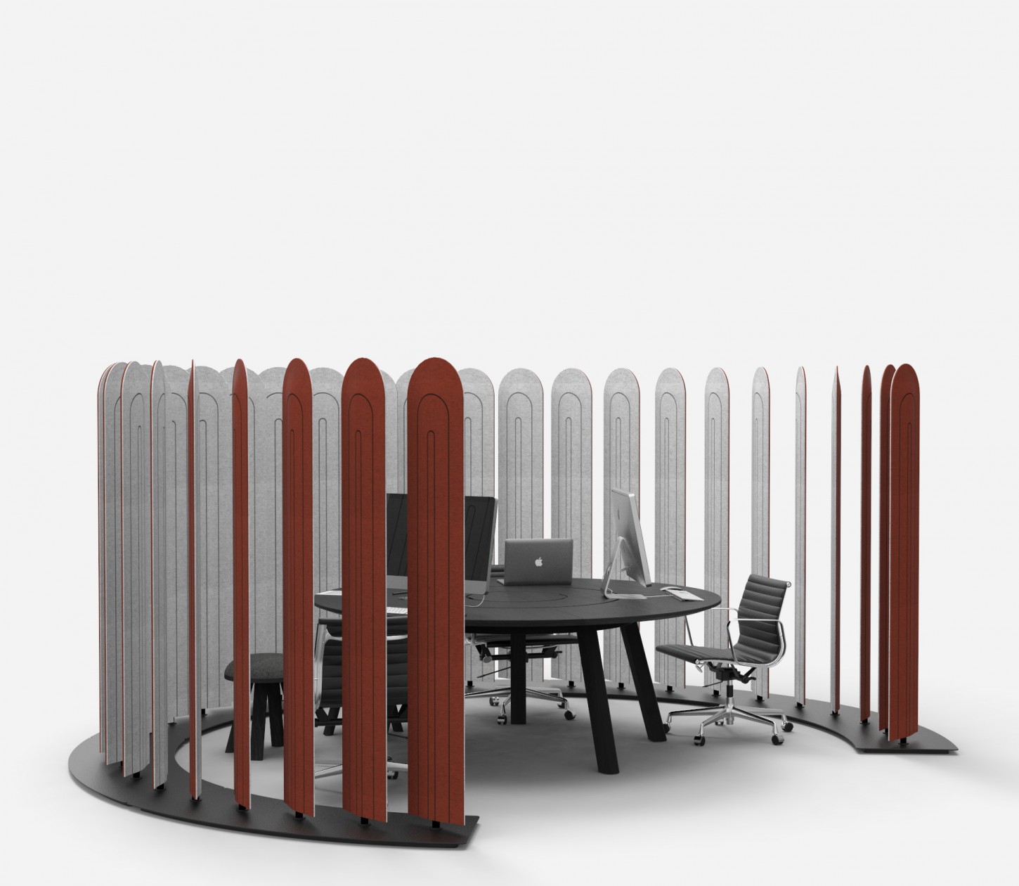 This free-standing room divider is made up of a series of five rotating acoustic blinds. With a simple twist, the blinds can be opened or closed to varying degrees to create privacy or open-up space. This gives individuals the opportunity to determine the level of privacy they may want or need at any given moment to concentrate on a specific task.