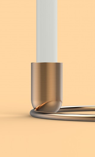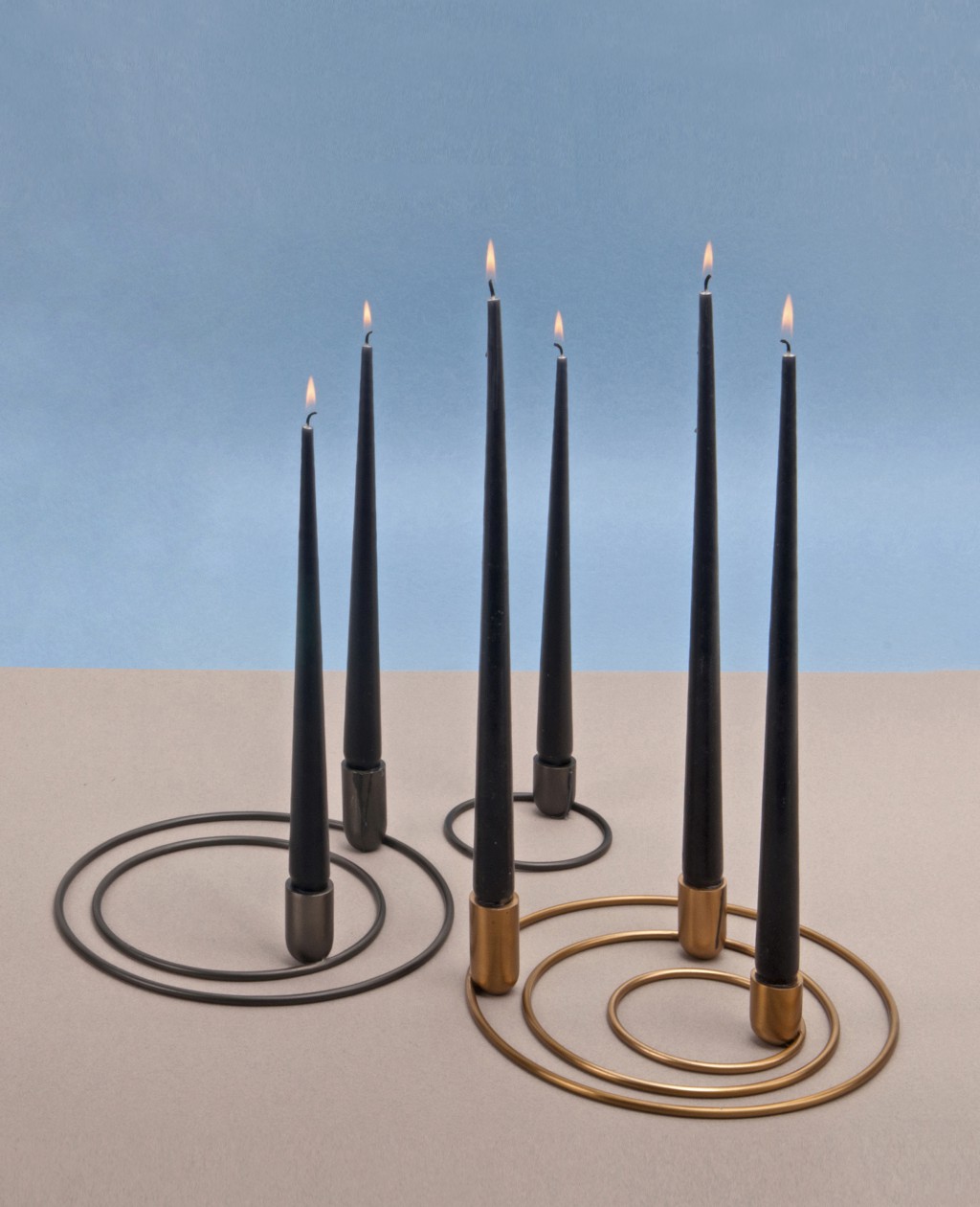 La collection de bougeoirs « Orbital » est inspirée par le mouvement. L’anneau qui stabilise le bougeoir représente le mouvement des planètes dans la galaxie.