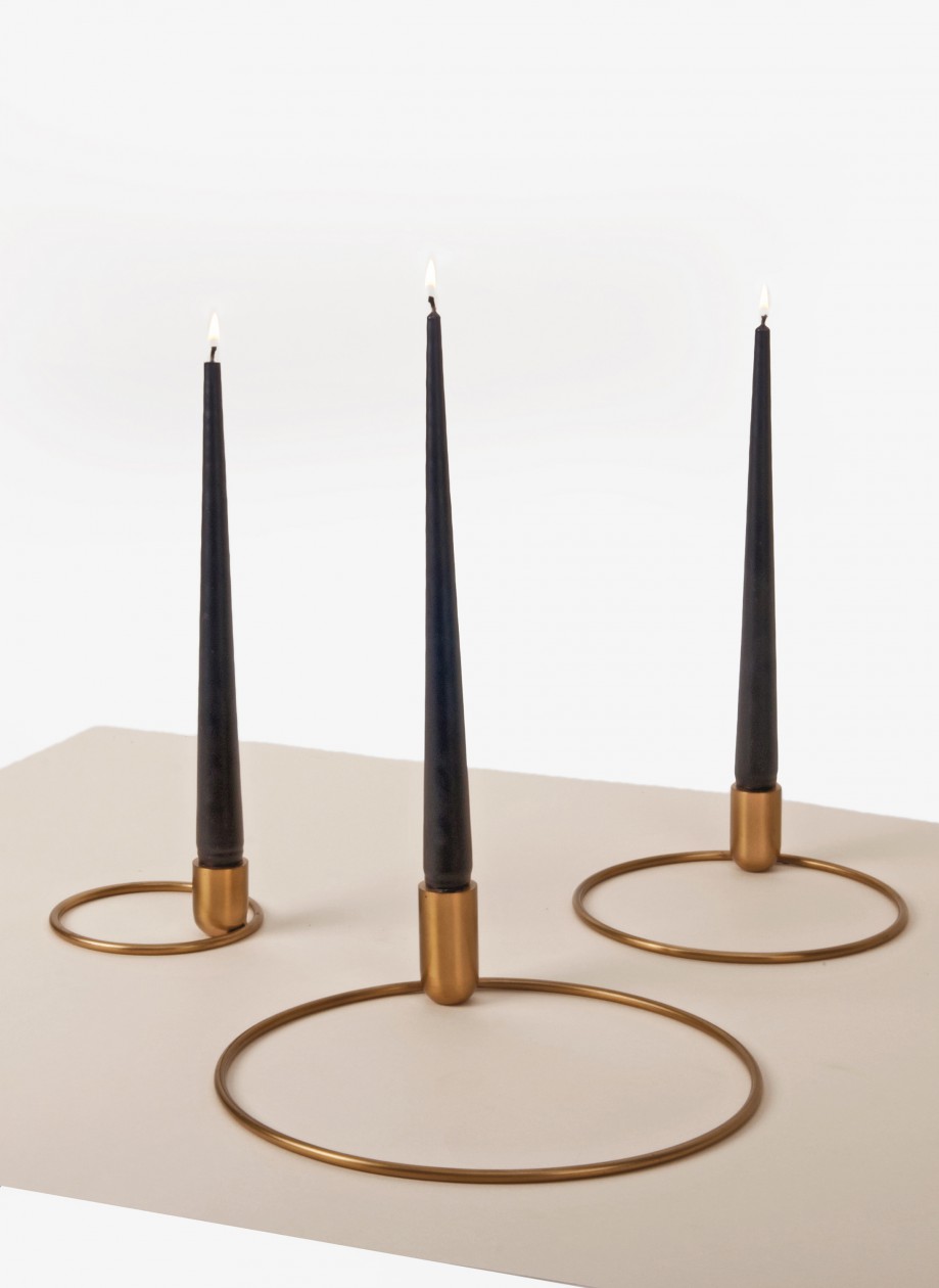 Le design général des bougeoirs est aussi un clin d’œil au monde la joaillerie. Au premier regard, on croit voir un ensemble de bijoux minimalistes.