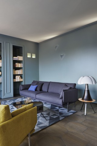 L’idée d’ensemble était de concevoir un canapé confortable et ergonomique qui donne pourtant une impression légère, dynamique et graphique de chaque côté, même vu de l’arrière.