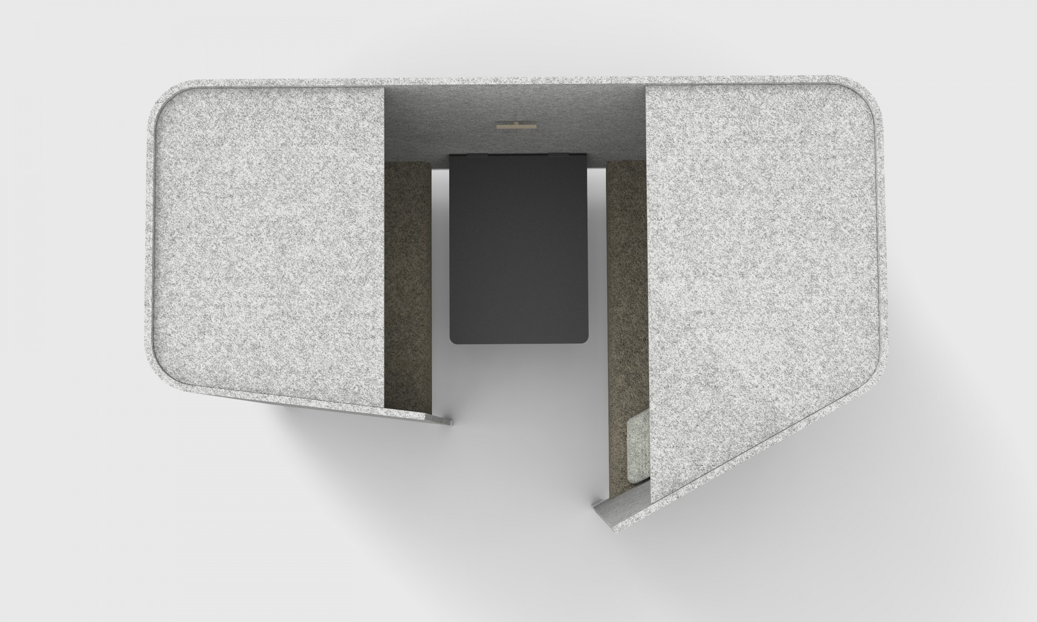 Zodra men neerzit, kan een klein tafeltje worden opengeklapt om gemakkelijk informatie te delen. Door de neergeklapte tafeltjes wordt de algemene omvang van de BuzziHive verkleind. Of ze nu apart of in groep worden gebruikt, deze vergadercellen geven een architecturale en moderne toets aan elk kantoor of openbare ruimte. De achterkant is vlak, zodat ze gemakkelijk in rijen tegen een muur kunnen worden geplaatst of een afscheiding kunnen vormen tussen twee delen van een kantoor… of gewoon een eilandje van BuzziHives kunnen vormen …