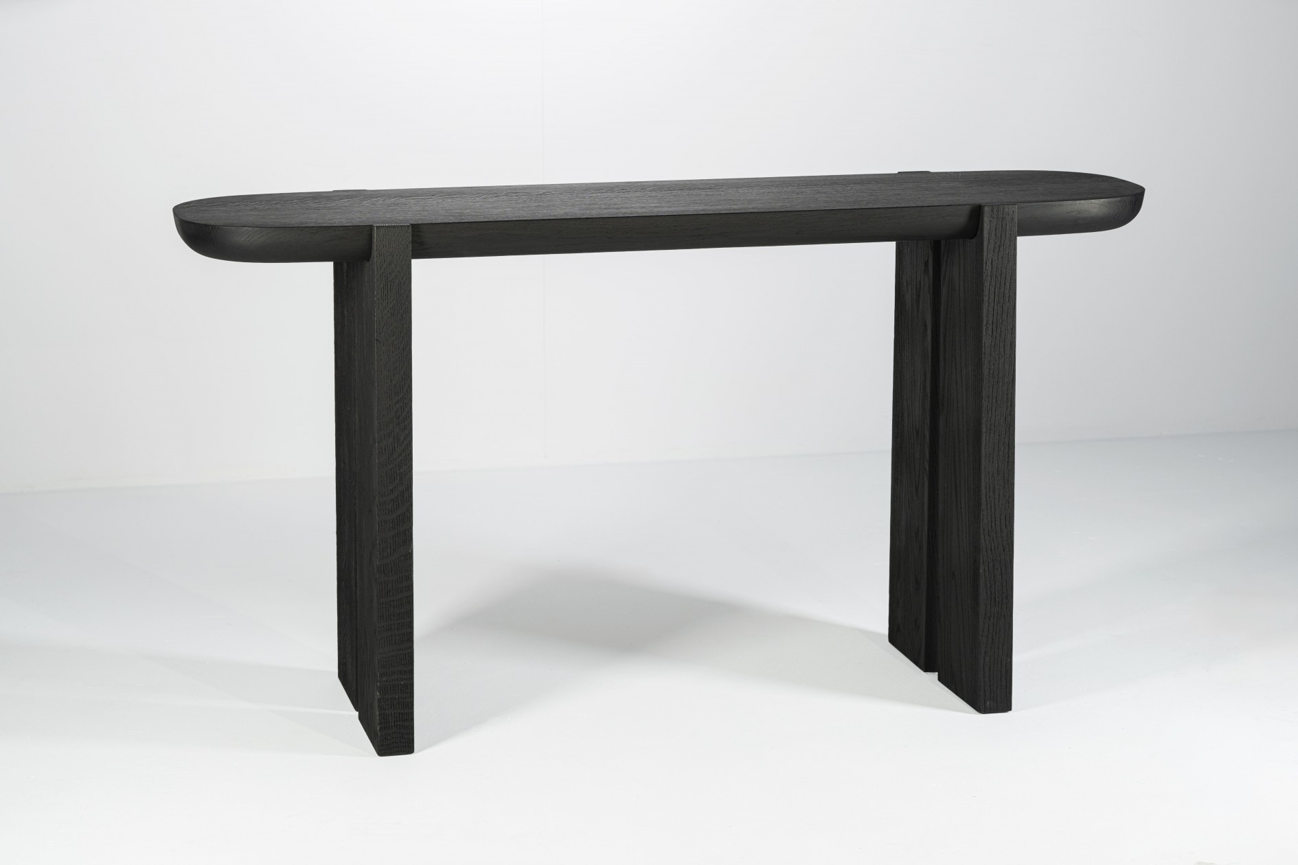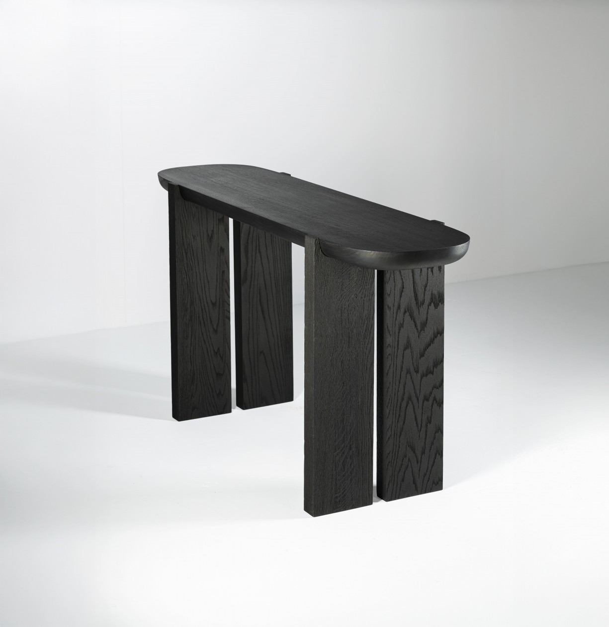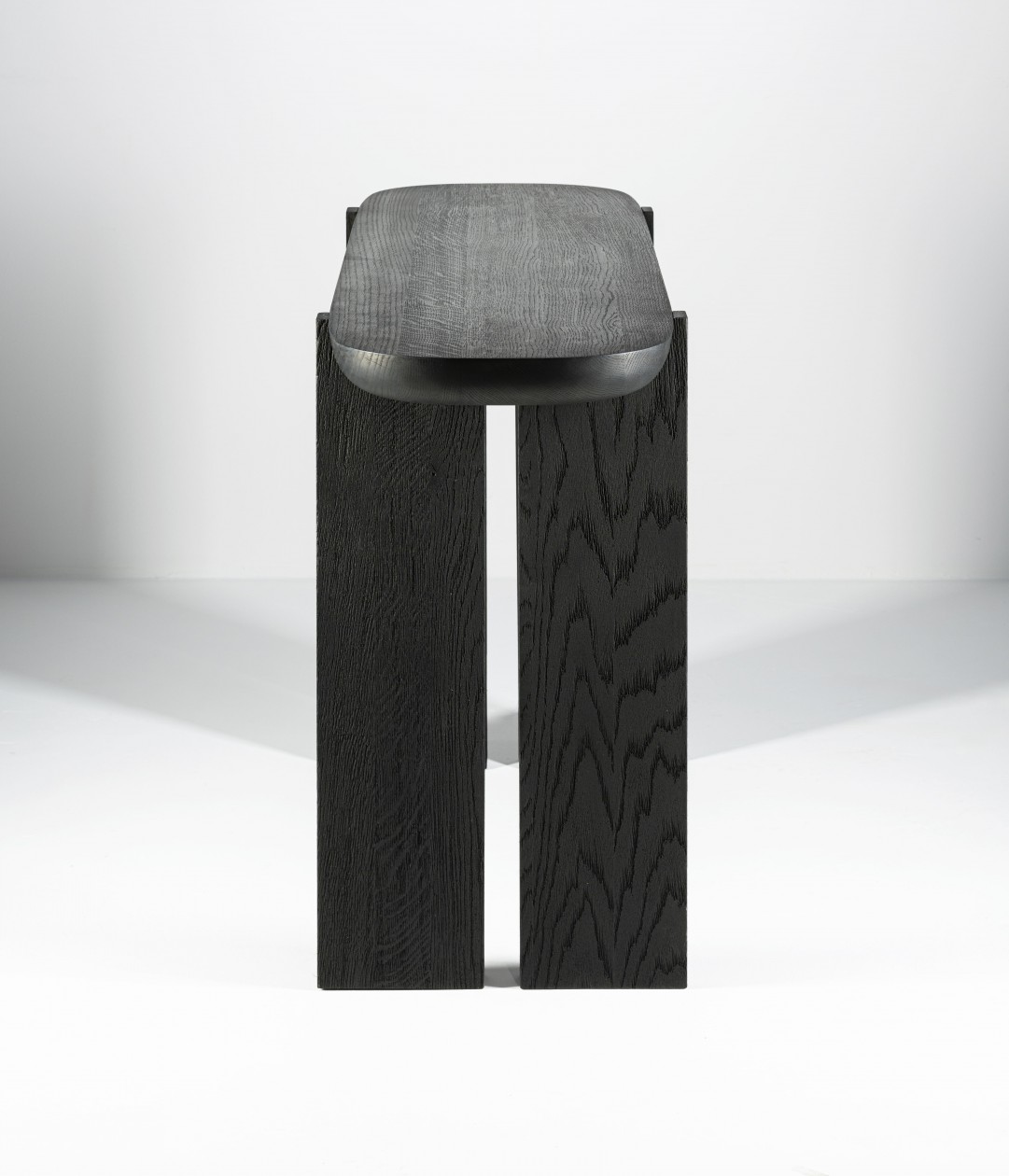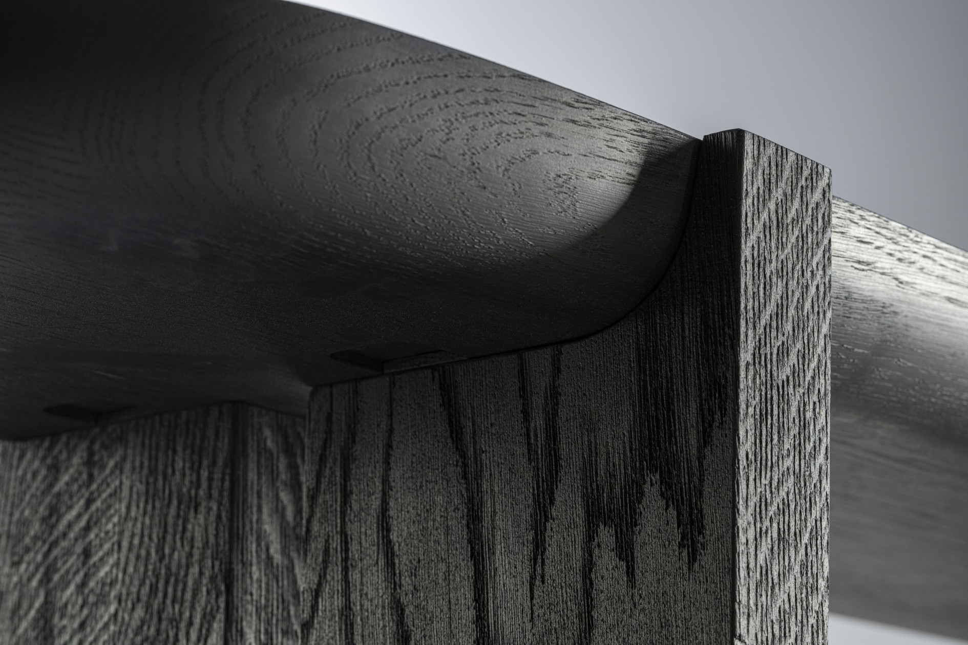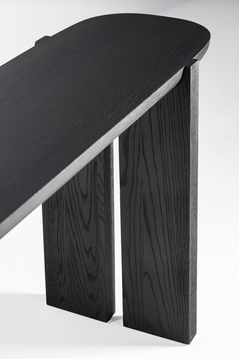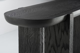 Een ander belangrijk element in de collectie zijn de verschillen. Het contrast tussen de verschillende elementen van de meubelstukken wordt visueel verder benadrukt door de verschillende afwerkingen van de poten en bovenbladen. De verticale elementen, de poten en staanders, zijn zeer diep geschuurd waardoor ze een erg ruwe en matte textuur hebben, terwijl de horizontale elementen zoals de tafelbladen glad en verfijnd zijn. Hoewel in de hele collectie hetzelfde massieve eikenhout is gebruikt, lijken de onderdelen van twee verschillende materialen te zijn gemaakt. Door de ruwheid van de poten lijkt het alsof ze gemaakt zijn van een poreuze steensoort zoals lavasteen of houtskool.