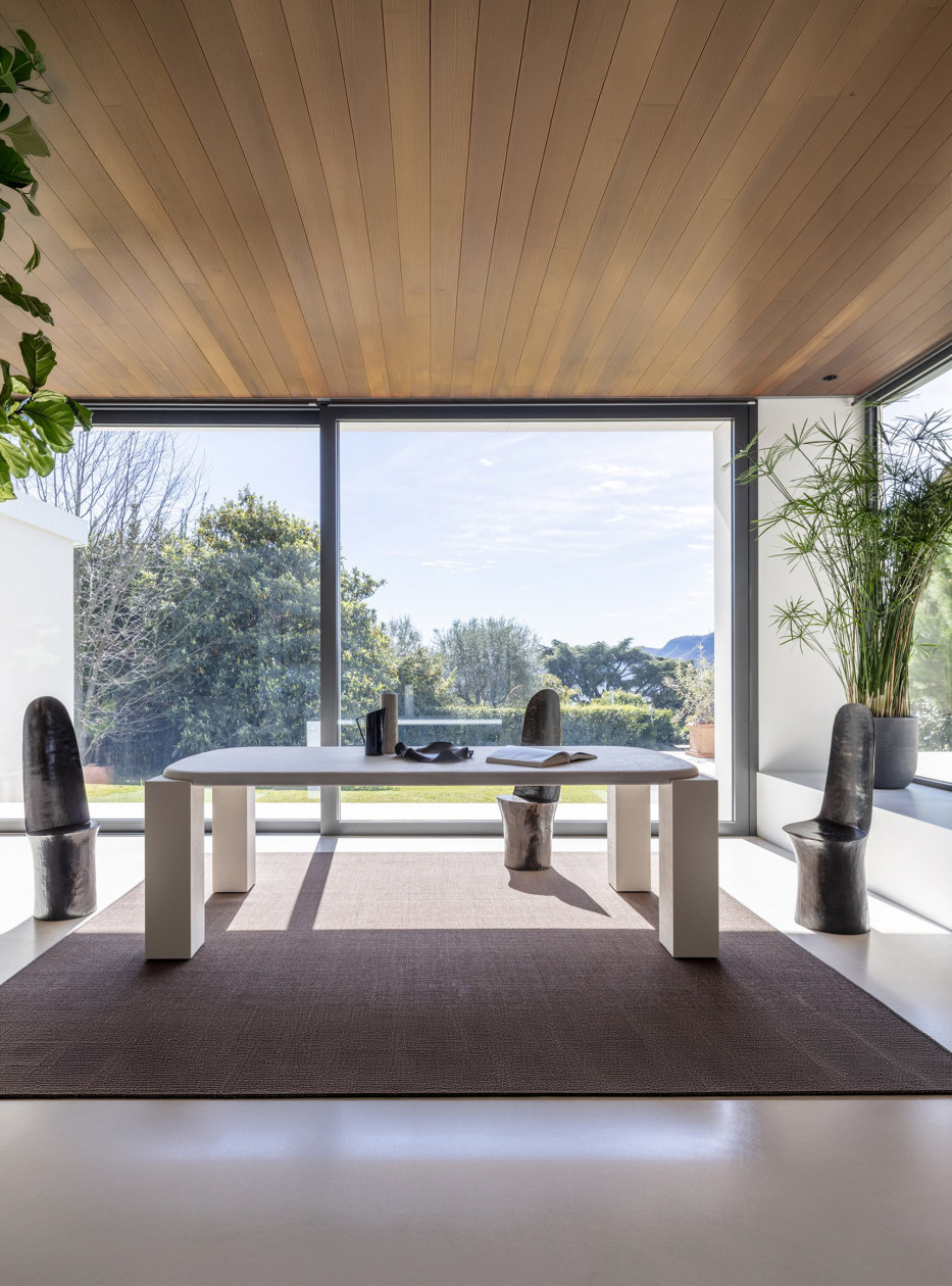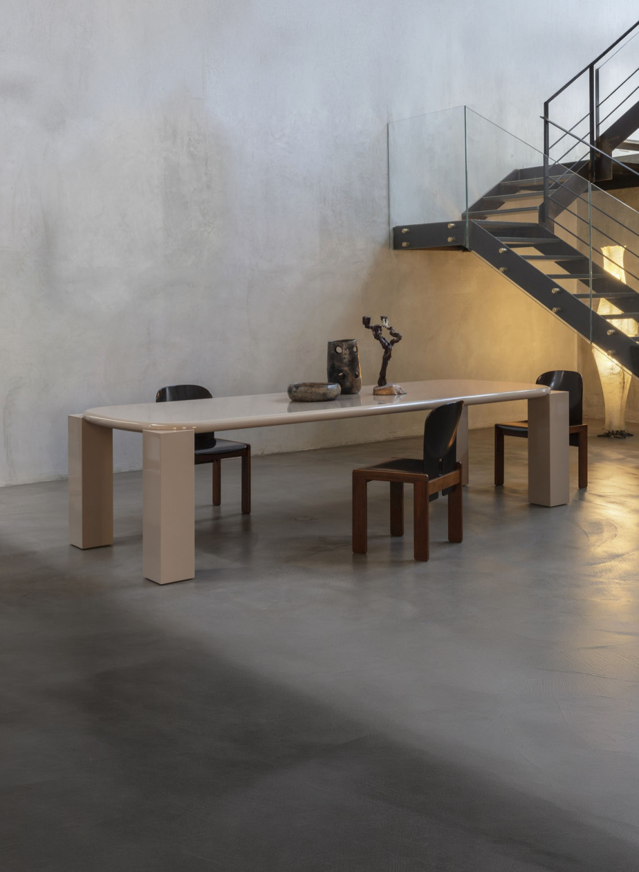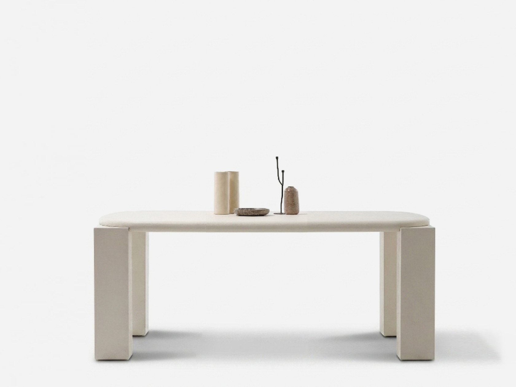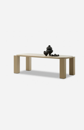 De Hero-tafel belichaamt een strijd tussen zachtheid en brutaliteit, gevangen in één enkel meubelstuk. Het is alsof de tafel verscheurd wordt tussen zijn zachtere en hardere kanten. Tegelijkertijd straalt hij echter een gevoel van evenwicht en materialiteit uit, met zijn vier poten die het tafelblad aan hun uiteinden ondersteunen.